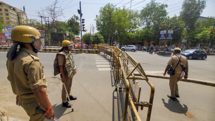 Agra: Security personnel deployed near the house of Ramjilal Suman in the view of a gethering of Karni Sena members at Kuberpur, in Agra, Saturday, April 12, 2025. The members of Karni Sena allegedly attacked and vandalised Suman’s residence in Agra on March 26 in protest over his statement on Rana Sanga. (PTI Photo) (PTI04_12_2025_000054B) *** Local Caption ***