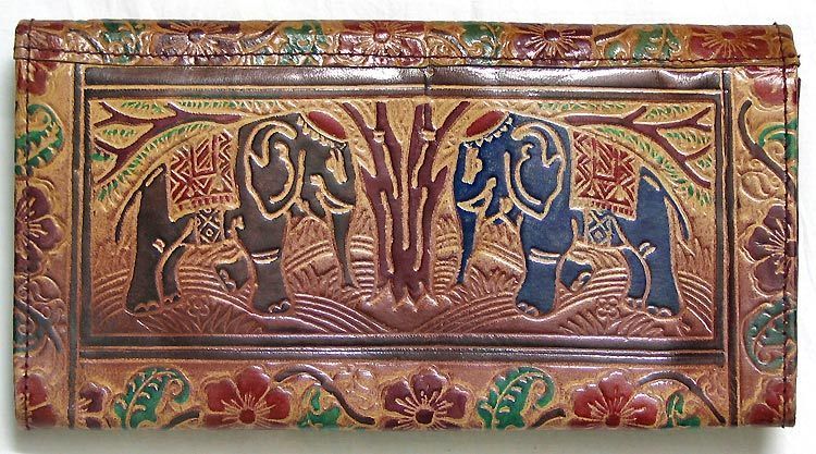 The craft created here is called embossed leather craft. Embossed leather products are made using vegetable tanned goatskin leather. Every piece is embossed using a metal die, after which it is individually painted by hand using spirit colors.