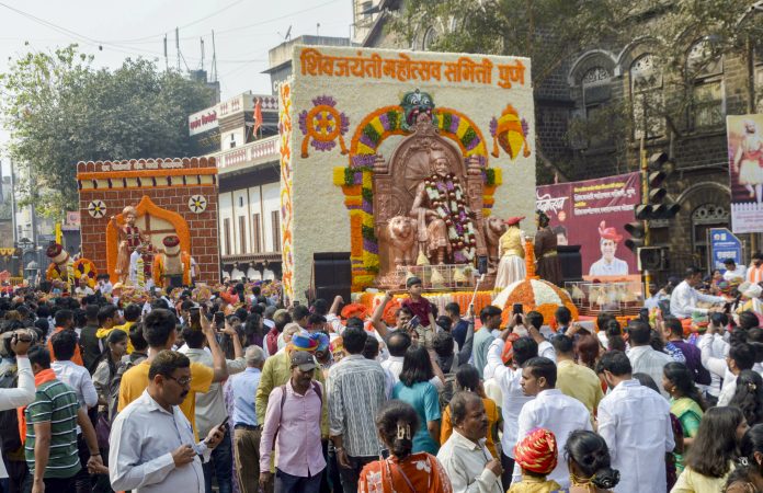 Pune: People take part in a procession organised by the Shiv Jayanti Festival Committee Pune on the birth anniversary of Chhatrapati Shivaji Maharaj, in Pune, Thursday, Feb. 19, 2026. (PTI Photo) (PTI02_19_2026_000367B)