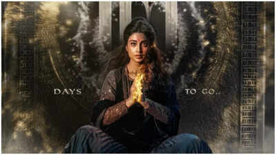 In the unveiled poster, Shriya Saran dons a black embroidered saree, her eyes closed in prayer, exuding serenity and an unshakable spiritual presence. The stillness of the moment carries thunderous weight — it feels less like a character reveal and more like the introduction of a force.