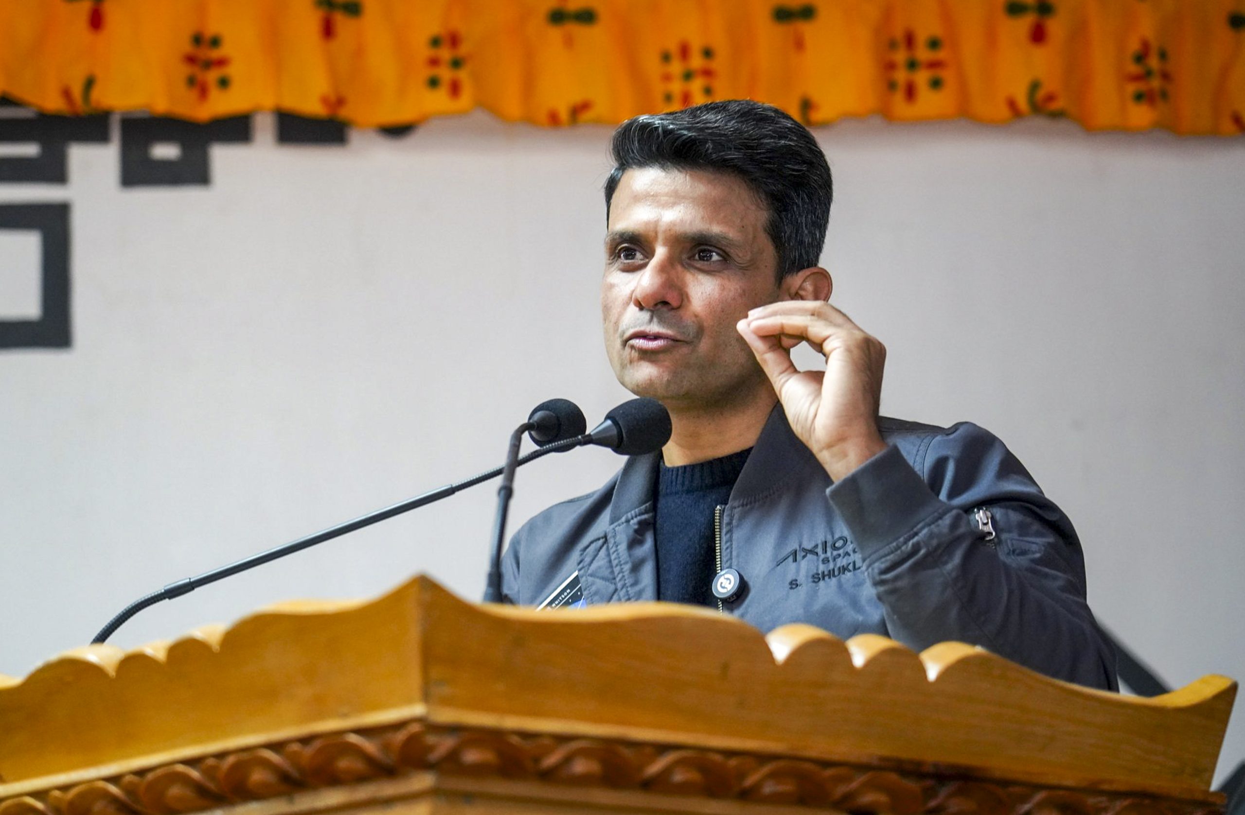 **EDS: THIRD PARTY IMAGE** In this image posted on April 1, 2026, Astronaut and IAF Group Captain Shubhanshu Shukla during an interactive session at EJM College, Leh. (@DIPR_Ladakh/X via PTI Photo) (PTI04_01_2026_000336B)