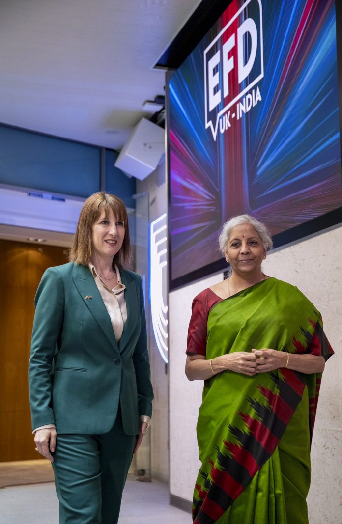 **EDS: THIRD PARTY IMAGE** In this image posted by @FinMinIndia via X on April 9, 2025, Union Finance Minister Nirmala Sitharaman with the Chancellor of the Exchequer of the United Kingdom Rachel Reeves during the 13th Economic and Financial Dialogue, in London. (@FinMinIndia on X via PTI Photo) (PTI04_09_2025_000517B)