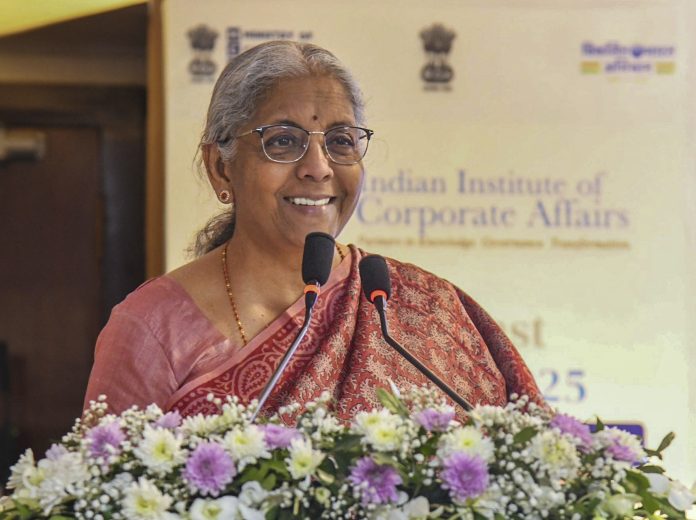 **EDS: THIRD PARTY IMAGE** In this image via @PIBShillong on X, Union Minister of Finance and Corporate Affairs Nirmala Sitharaman during the inauguration of IICA North-East Conclave 2025, at IIM Shillong, in Meghalaya, Friday, July 11, 2025. (@PIBShillong via PTI Photo) (PTI07_11_2025_000099B)