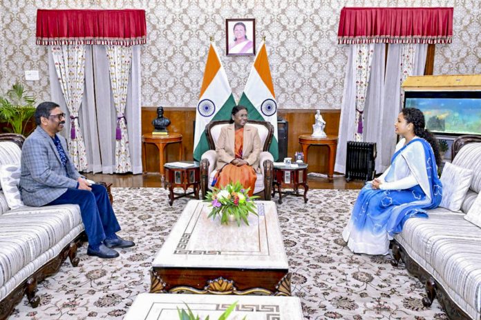 **EDS: THIRD PARTY IMAGE** In this image posted on Dec. 30, 2025, President Droupadi Murmu with Jharkhand Chief Minister Hemant Soren and his wife Kalpana Soren during a meeting, in Ranchi.(@HemantSorenJMM/X via PTI Photo) (PTI12_30_2025_000082B) *** Local Caption ***