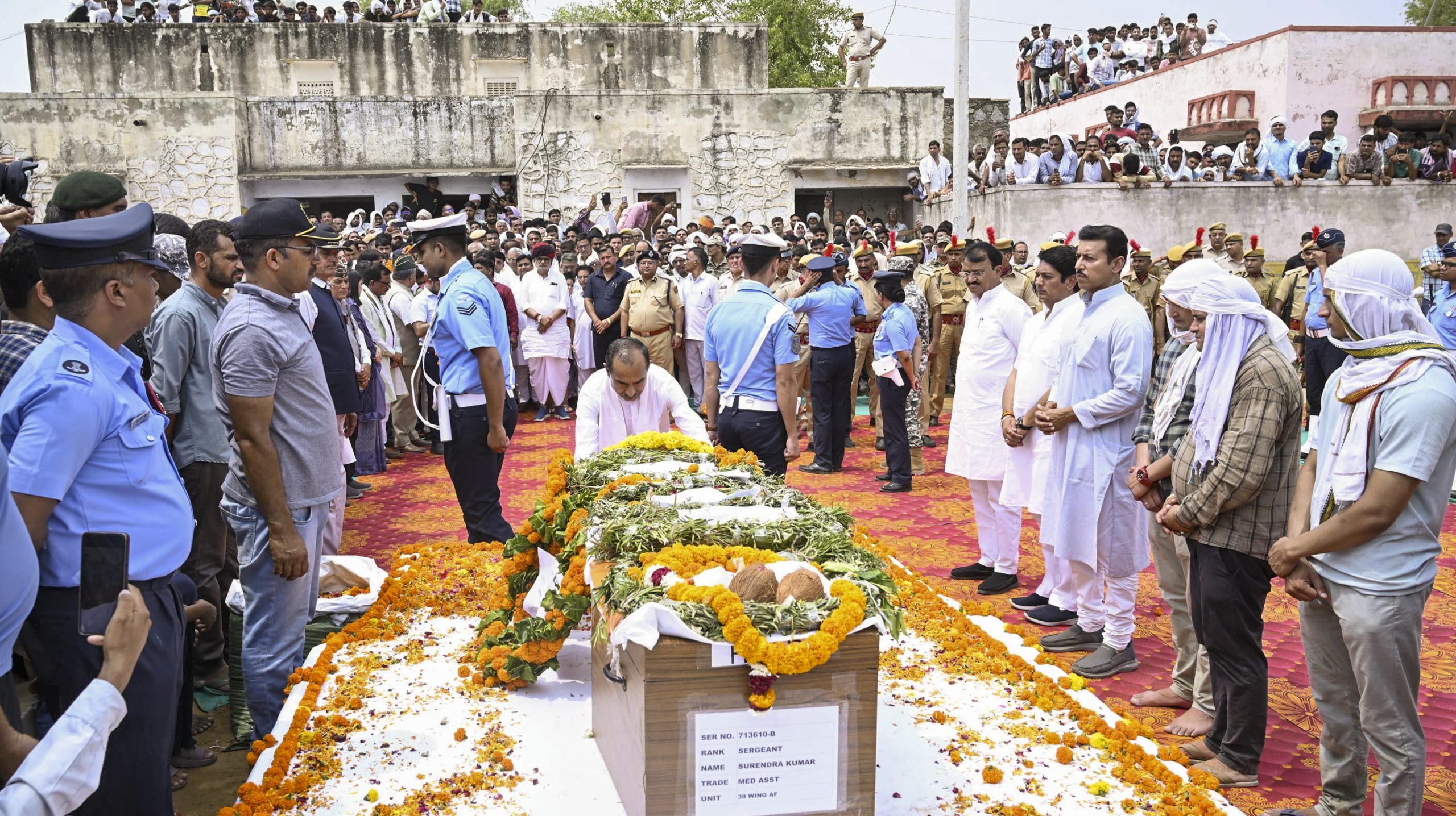 His body was brought to his hometown by road, with a ‘Tiranga Yatra’ being held from Mandawa to his village Mehradasi. The procession was accompanied by hundreds of people.