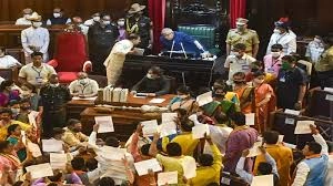 বিধানসভার বিশেষ অধিবেশন, যা মূলত বাংলা ভাষার মর্যাদা এবং অন্যান্য রাজ্যে বাঙালিদের সুরক্ষার উপর মনোযোগ দেওয়ার জন্য ডাকা হয়েছিল, তার সমাপ্তি দিনে বিশৃঙ্খলার জন্য স্মরণীয় হয়ে থাকবে।