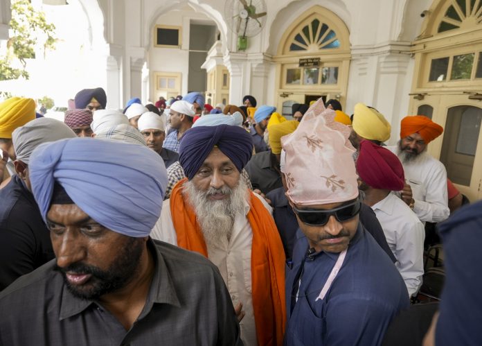 Amritsar: Akali Dal leader Sukhbir Singh Badal after he was re-elected as Shiromani Akali Dal President, at the Golden Temple, in Amritsar, Saturday, April 12, 2025. (PTI Photo/Shiva Sharma) (PTI04_12_2025_000227B) *** Local Caption ***