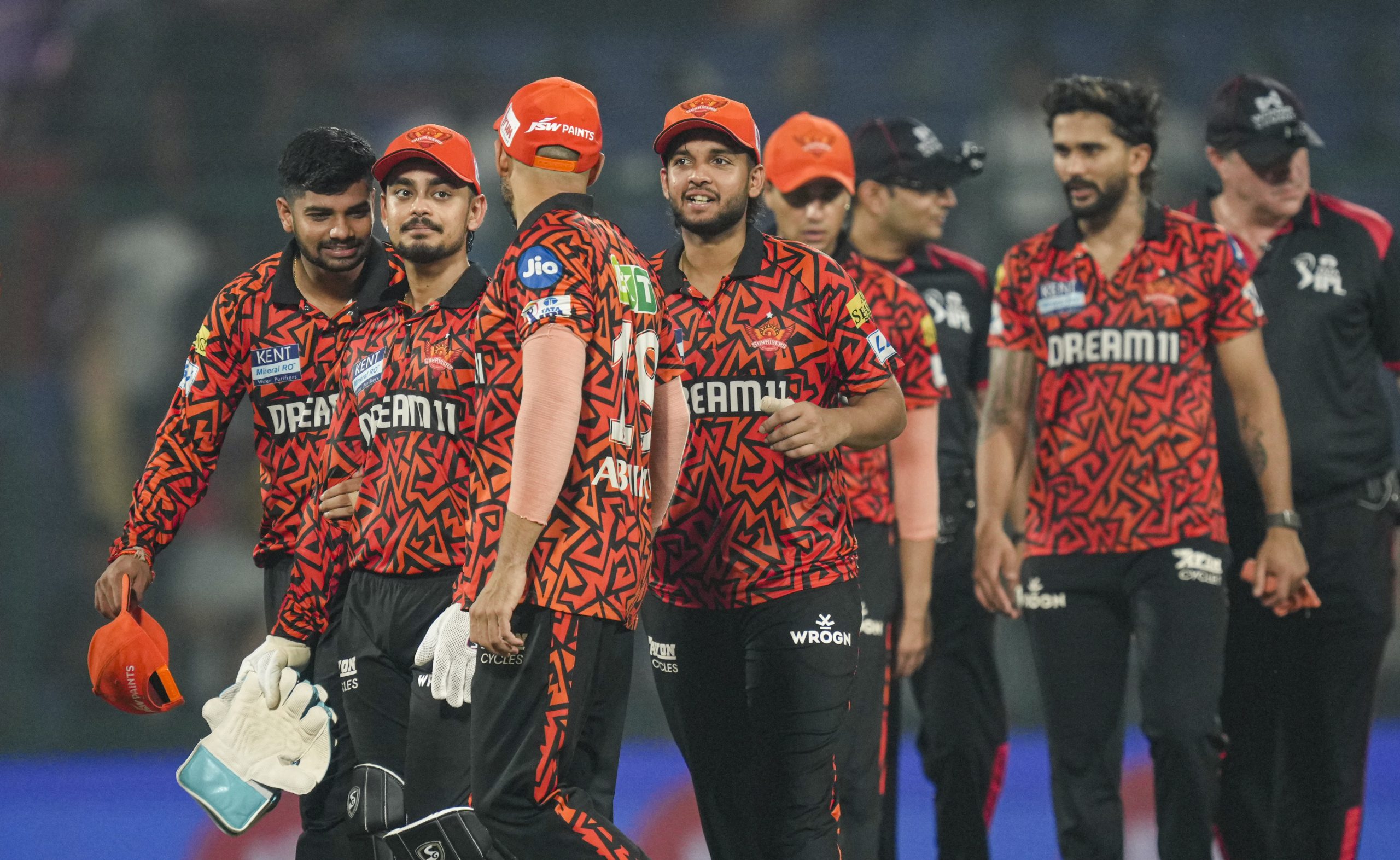 New Delhi: Sunrisers Hyderabad's players celebrate after winning the Indian Premier League (IPL) 2025 T20 cricket match against Kolkata Knight Riders, at the Arun Jaitley Stadium, in New Delhi, Sunday, May 25, 2025. (PTI Photo/Atul Yadav) (PTI05_25_2025_000674B) *** Local Caption ***