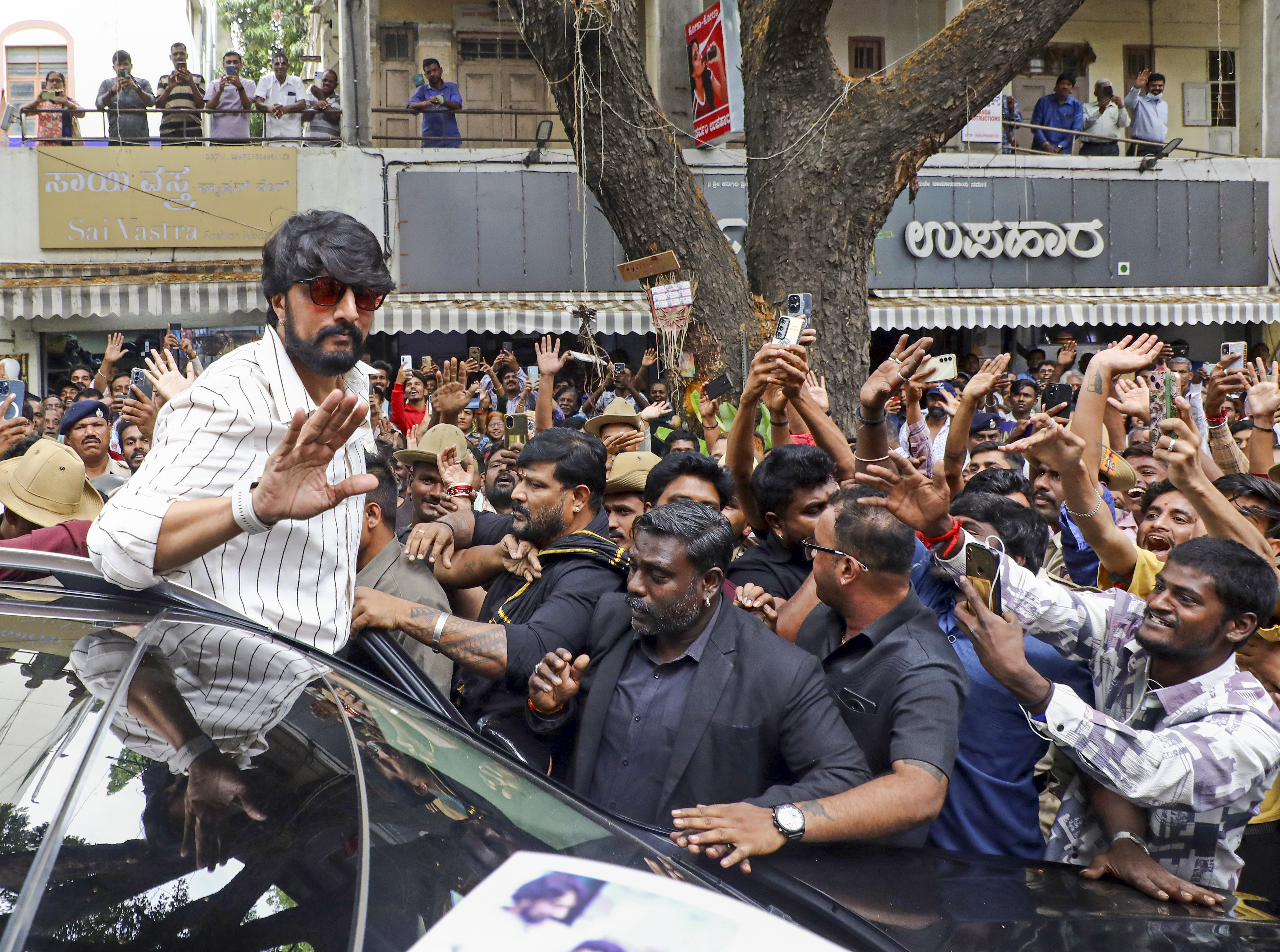 Bengaluru: Superstar Kiccha Sudeep meets fans during an event, in Bengaluru, Thursday, April 10, 2025. (PTI Photo)(PTI04_10_2025_000137B)
