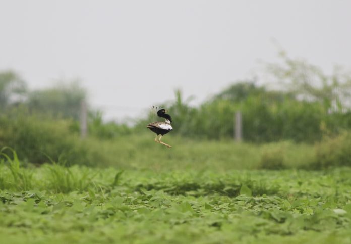 **EDS: WITH STORY; THIRD PARTY IMAGE** In this image by BNHS, a lesser florical bird, seen at the Tadoba-Andhari Tiger Reserve, in Chandrapur district of Maharashtra. (BNHS via PTI Photo) (PTI04_13_2025_000045B)
