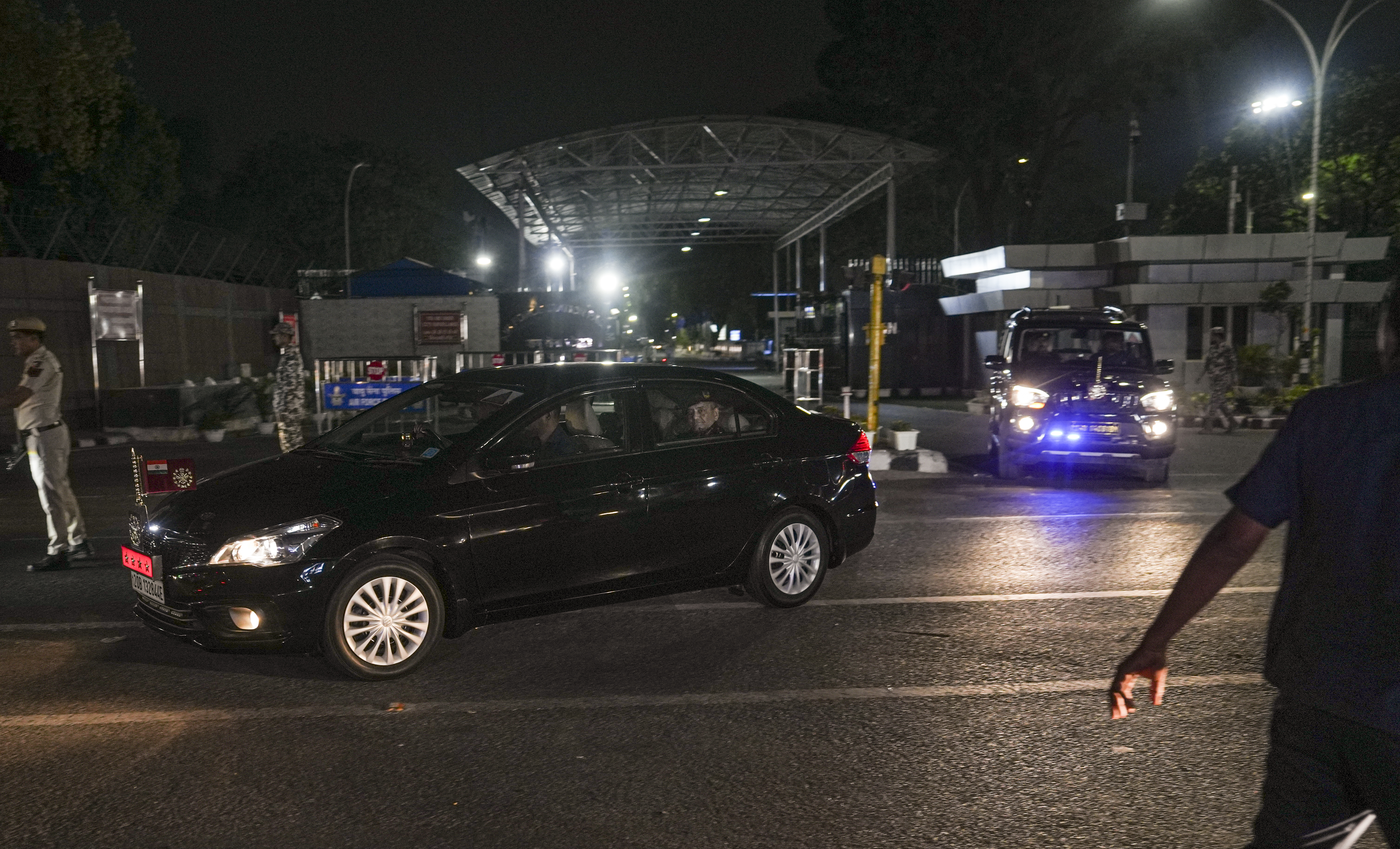 New Delhi: Chief of Defence Staff (CDS) General Anil Chauhan’s convoy leaves from the Air Force Station Palam, in New Delhi, Thursday, April 10, 2025. (PTI Photo/Manvender Vashist Lav) (PTI04_10_2025_000367B) *** Local Caption ***