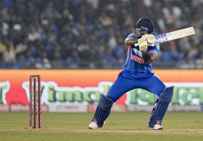 Raipur: India's captain Suryakumar Yadav plays a shot during the second T20I cricket match between India and New Zealand, at Shaheed Veer Narayan Singh International Cricket Stadium, in Raipur, Chhattisgarh, Friday, Jan. 23, 2026. (PTI Photo/Karma Bhutia)(PTI01_23_2026_000789B)