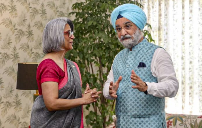 **EDS: THIRD PARTY IMAGE** In this image posted on March 27, 2026, Delhi LG Taranjit Singh Sandhu with High Commissioner of Sri Lanka to India, Mahishini Colonne, during a meeting. (@SandhuTaranjitS/X via PTI Photo)(PTI03_27_2026_000347B)