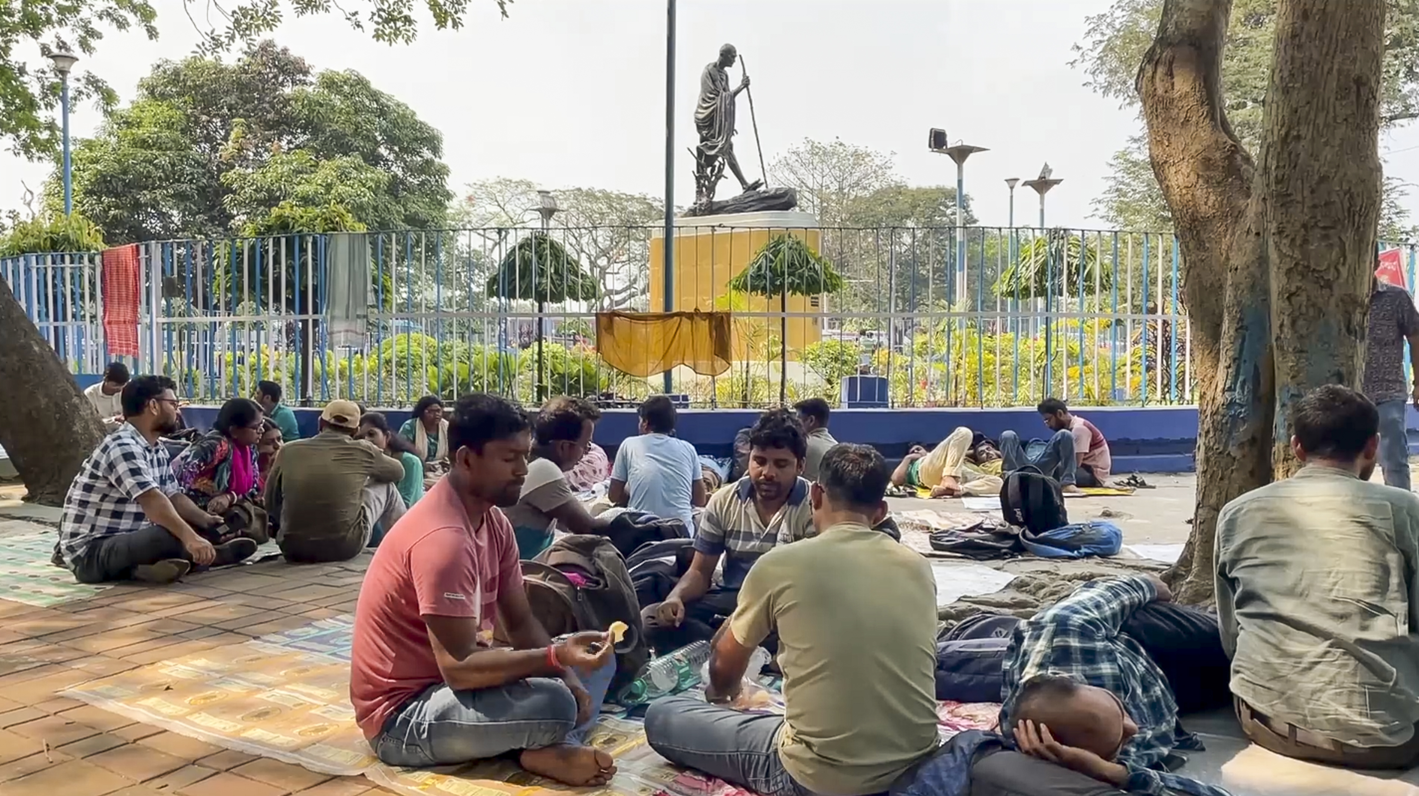 **EDS: GRAB VIA PTI VIDEOS** Kolkata: Teachers who lost their jobs following a Supreme Court judgment take part in a protest rally against the state government demanding the reinstatement of qualified teachers, in Kolkata, Saturday, April 12, 2025. (PTI Photo) (PTI04_12_2025_000297B) *** Local Caption ***