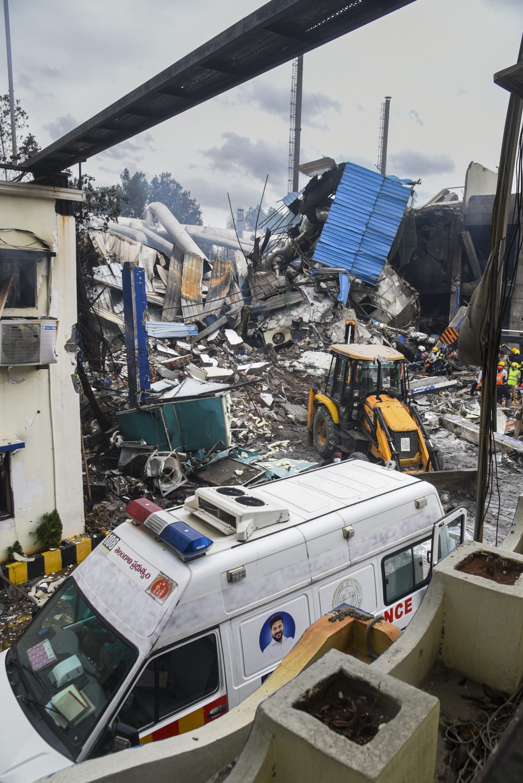 Sangareddy: Rubble of a pharma plant after an explosion, at Pashamylaram, in Sangareddy district, Telangana, Monday, June 30, 2025. At least 12 people were killed in the incident. (PTI Photo) (PTI06_30_2025_000168B)
