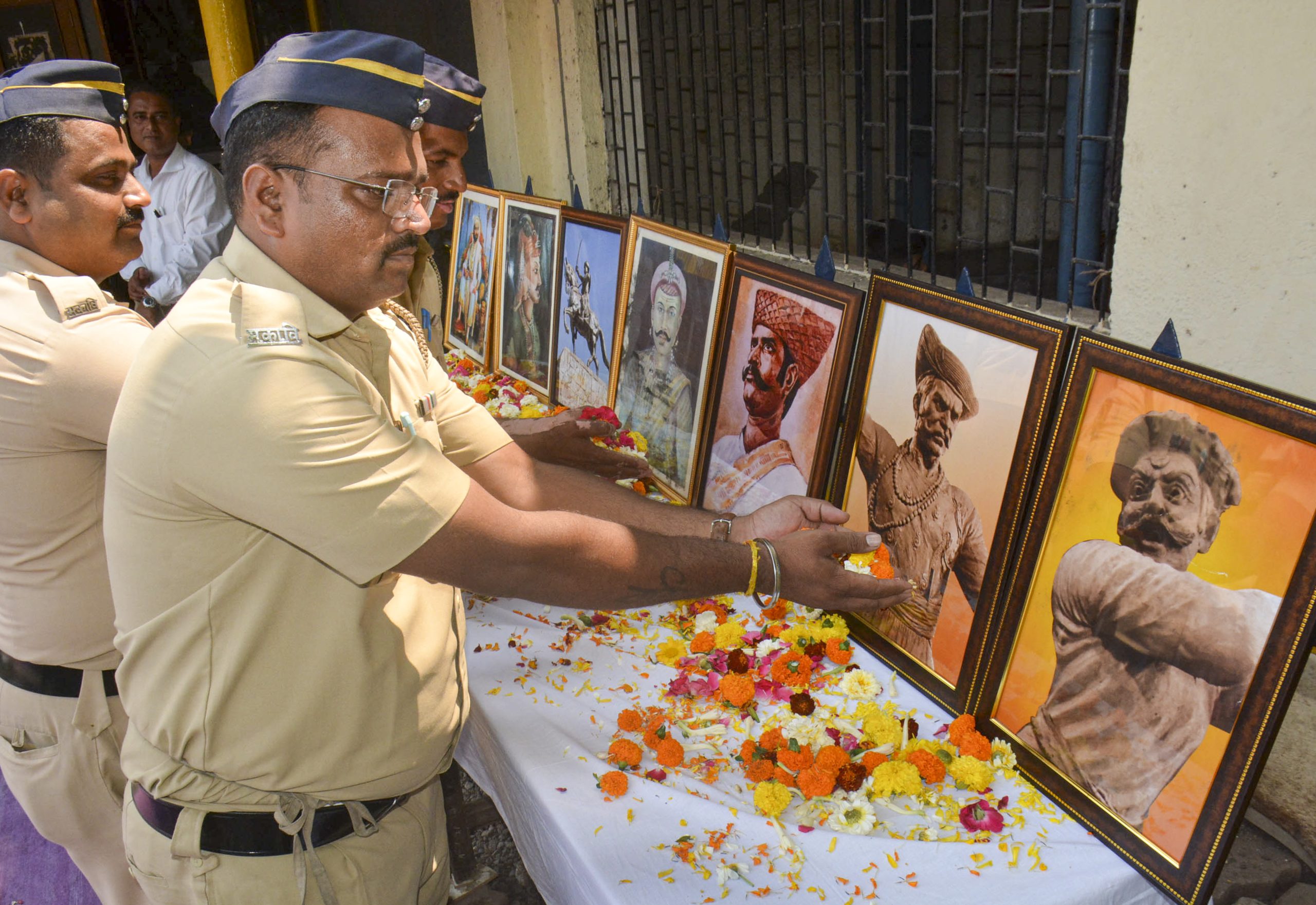 Thane: Thane Central Jail personnel pay tributes during the Thane Liberation Day, commemorating the liberation of the city from Portuguese rule in 1737 by Maratha forces, led by Chimaji Appa, Friday, March 27, 2026. (PTI Photo) (PTI03_27_2026_000368B)