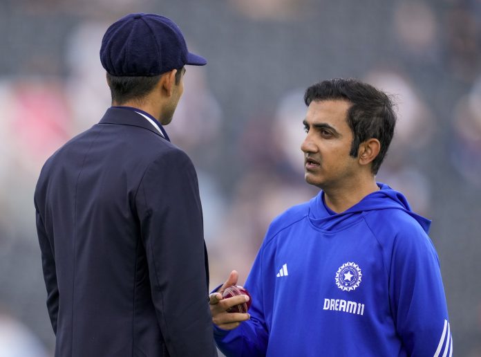 Manchester: India's captain Shubman Gill, left, and Head Coach Gautam Gambhir before the fourth test cricket match between India and England, at the Old Trafford Cricket Ground, in Manchester, Wednesday, July 23, 2025. (PTI Photo/R Senthilkumar) (PTI07_23_2025_000230B)