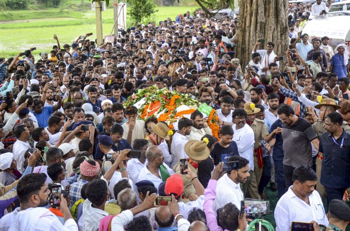 A sombre atmosphere prevailed in Nemra in Ramgarh district as thousands of people, including family, supporters, political leaders, and villagers, gathered to bid a final adieu with moist eyes.