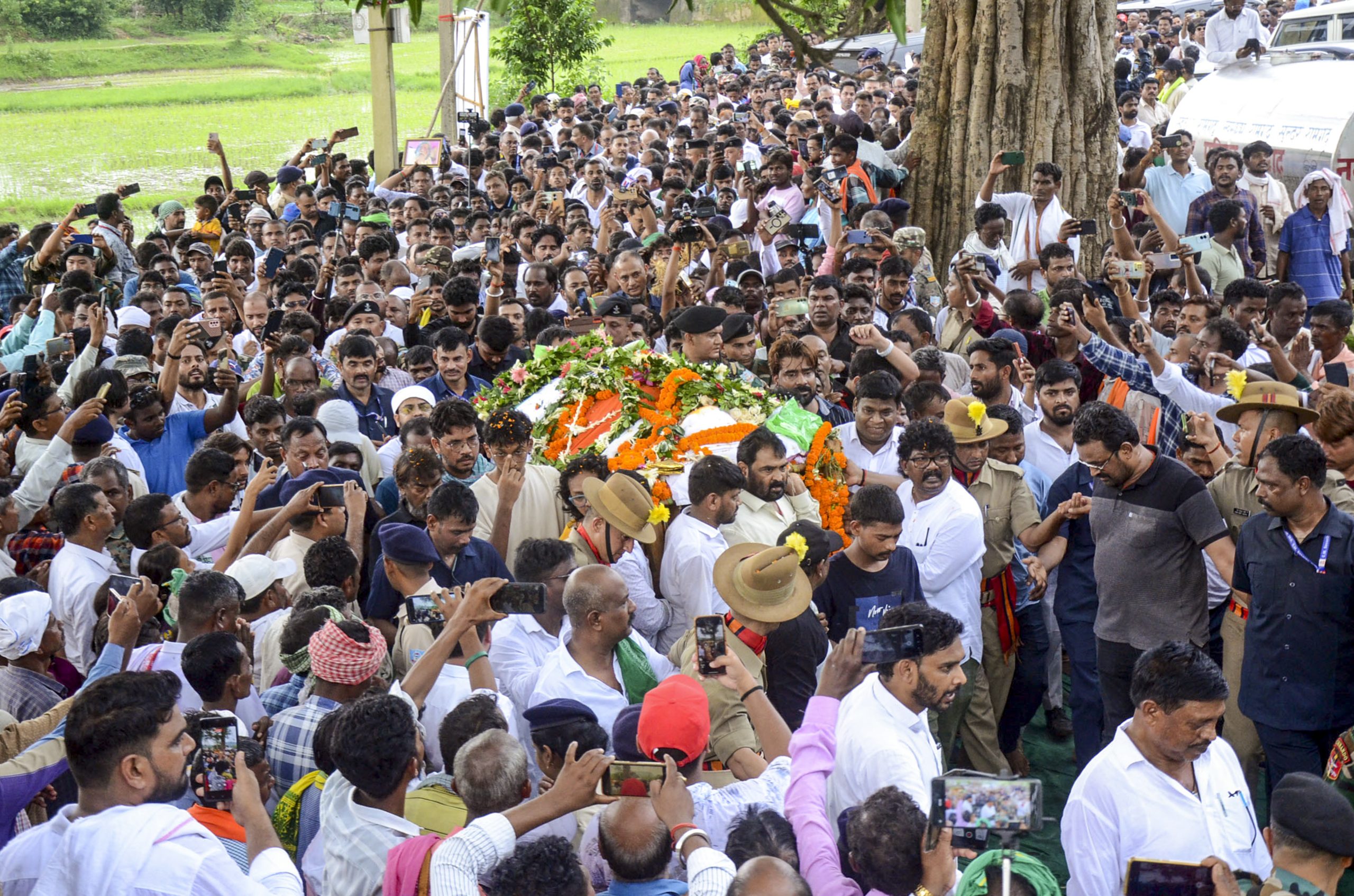 Nemra (Jharkhand), Aug 5 (PTI) A sea of mourners from all sections of the society — ranging from political stalwarts to villagers — gathered at Nemra, the native village of former Jharkhand chief minister Shibu Soren, as his mortal remains were consigned to flames on Tuesday.