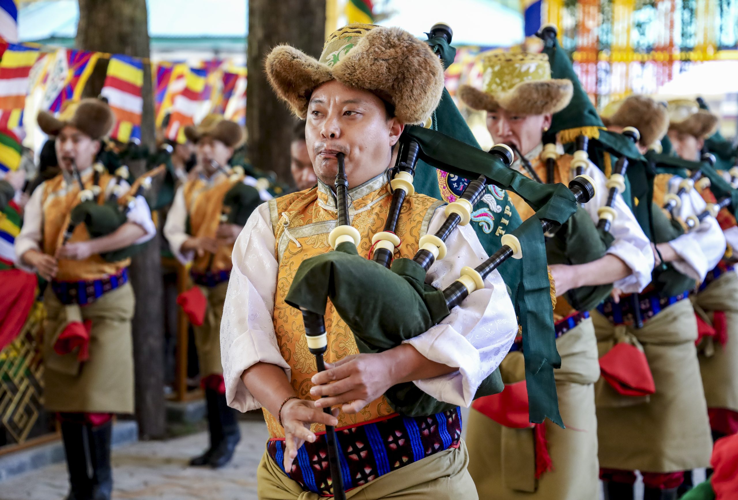 The event began with the Tibetan Institute of Performing Arts leading the Tibetan national anthem as the Tibetan national flag was ceremonially hoisted in the monastery courtyard, with Satyarthi hoisting the tricolour.