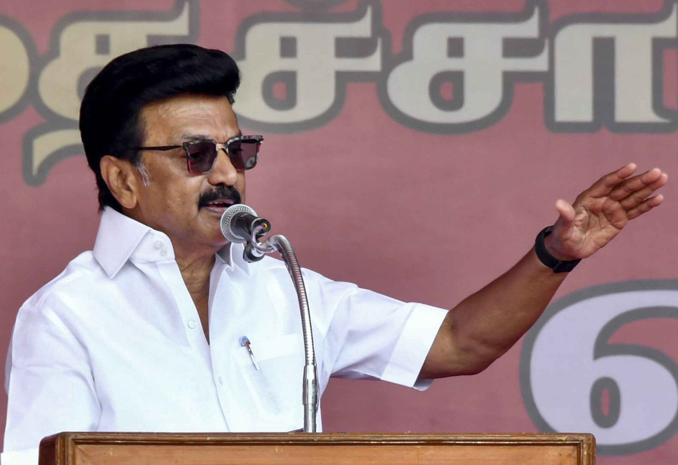 Erode: Tamil Nadu Chief Minister M.K. Stalin addresses a rally in support of candidates of the Dravida Munnetra Kazhagam (DMK)-led Secular Progressive Alliance ahead of the state Assembly elections, in Erode, Thursday, April 2, 2026. (PTI Photo) (PTI04_02_2026_000245B)