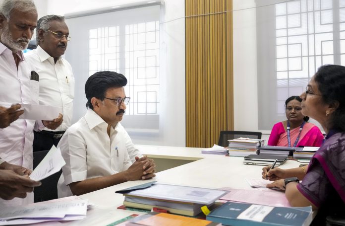 Chennai: Tamil Nadu Chief Minister and DMK President MK Stalin files his nomination papers from the Kolathur constituency ahead of the Tamil Nadu Assembly elections, in Chennai, Monday, March 30, 2026. (PTI Photo/R Senthilkumar)(PTI03_30_2026_000101B)