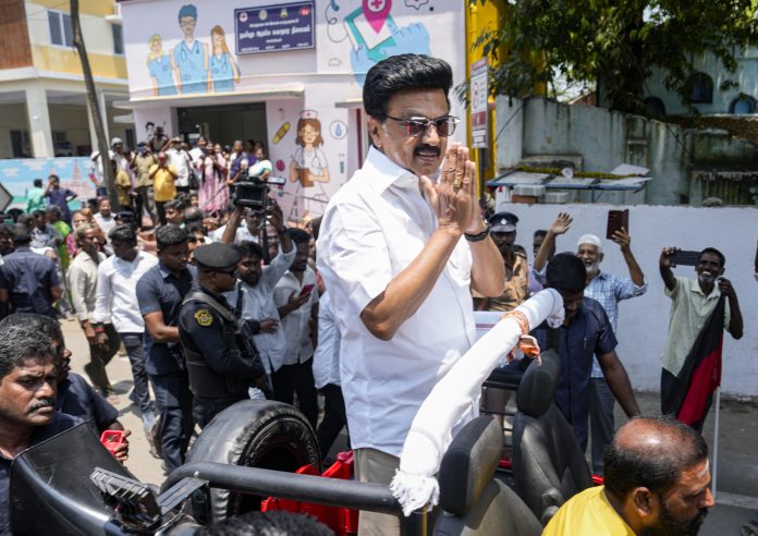 Chennai: Tamil Nadu Chief Minister and DMK President MK Stalin campaigns after filing his nomination papers from the Kolathur constituency ahead of the Tamil Nadu Assembly elections, in Chennai, Monday, March 30, 2026. (PTI Photo/R Senthilkumar)(PTI03_30_2026_000121B)