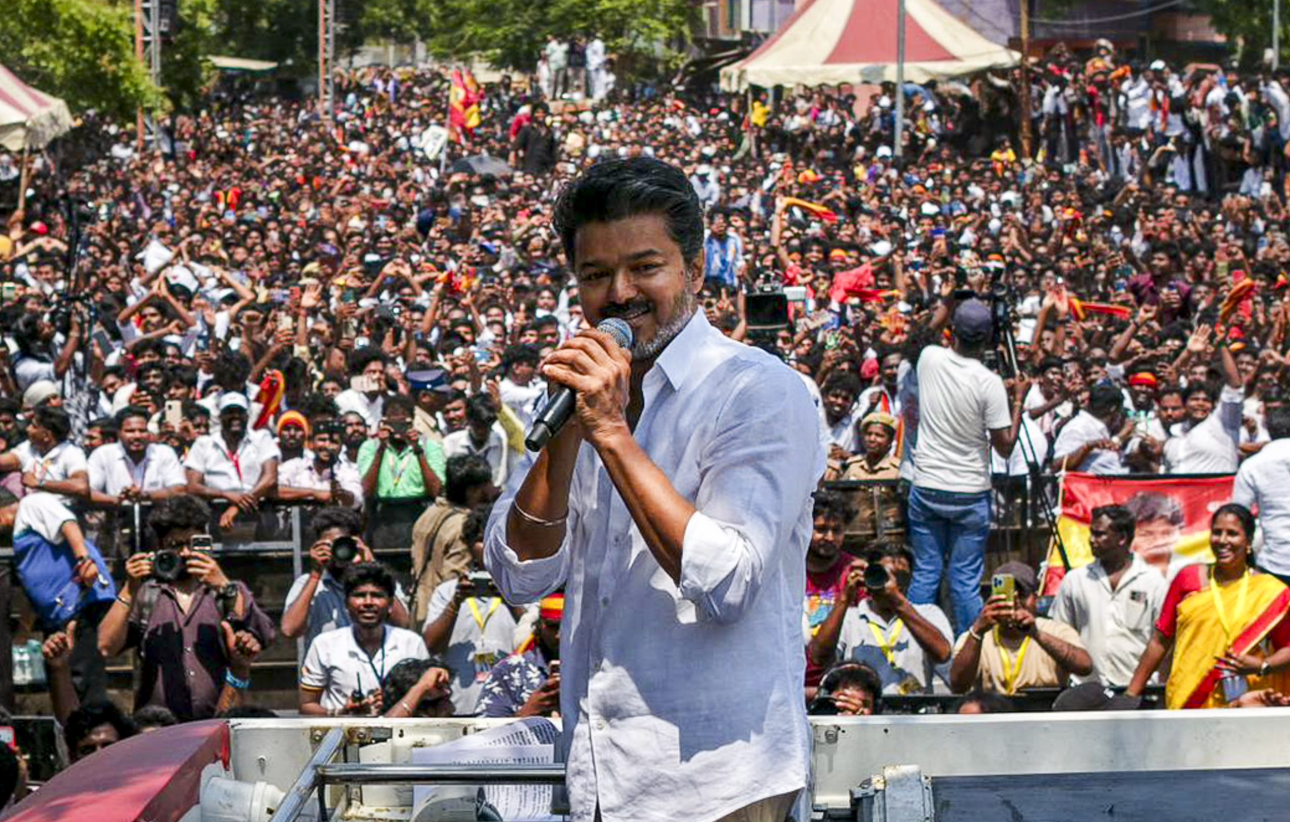 **EDS: THIRD PARTY IMAGE** In this image posted on March 30, 2026, Tamilaga Vettri Kazhagam (TVK) chief and actor Vijay campaigns after filing his nomination papers for the Tamil Nadu Assembly elections from the Perambur constituency, in Chennai. (Handout via PTI Photo)(PTI03_30_2026_000182B)