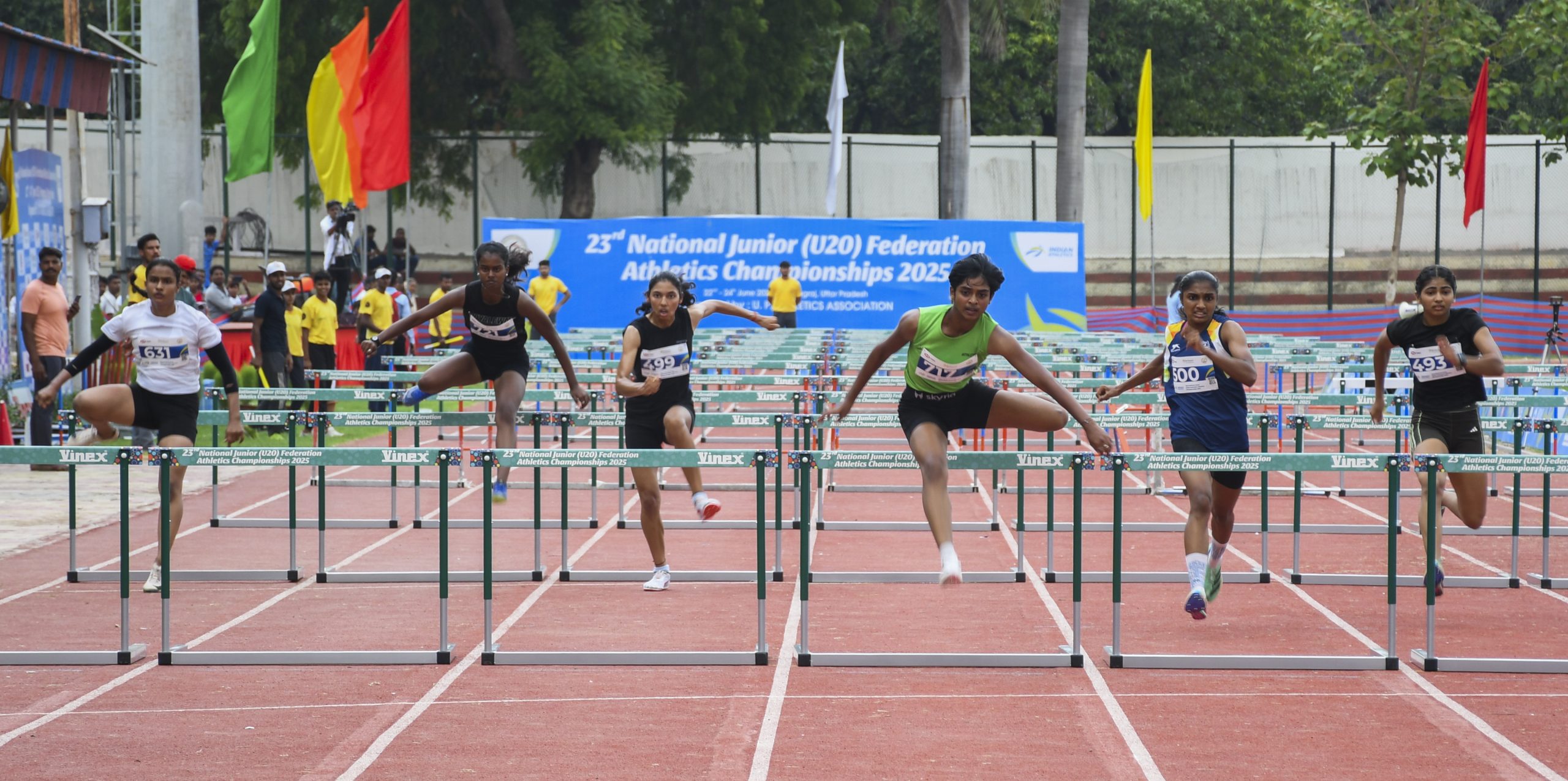 100m hurdles: Aerrolla Pranathi (Telangana) 14.42 sec , Shiny Gladssia (TN) 14.44 sec, Nehali Narendra Bora (Mah) 14.98 sec.