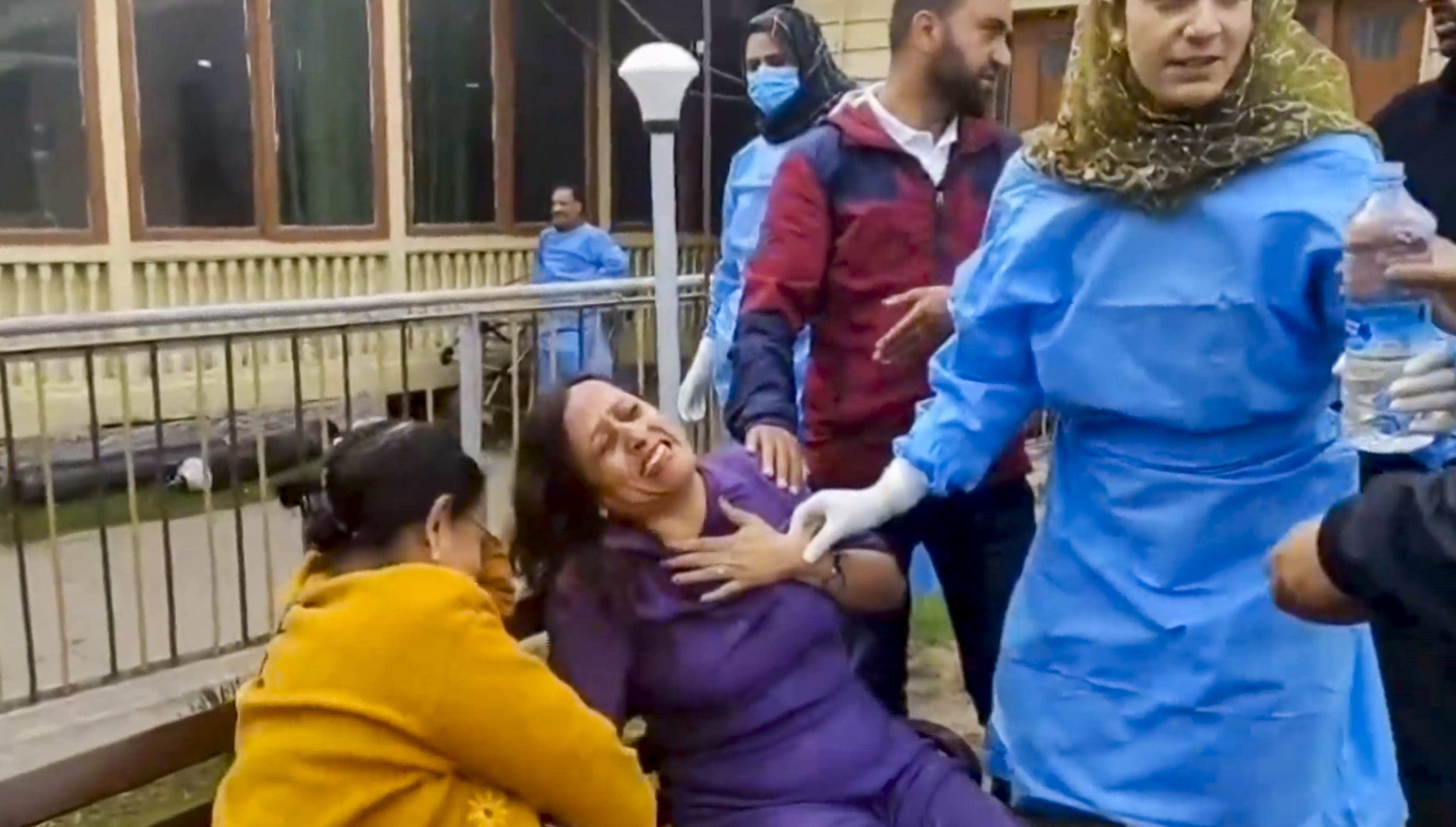 **EDS: SCREENSHOT VIA PTI VIDEOS** Anantnag: People react after terrorists attacked a group of tourists at Pahalgam, in Anantnag district, Jammu & Kashmir, Tuesday, April 22, 2025. At least one person has died and 20 suffered injuries in the attack, according to officials. (PTI Photo)(PTI04_22_2025_000386B)