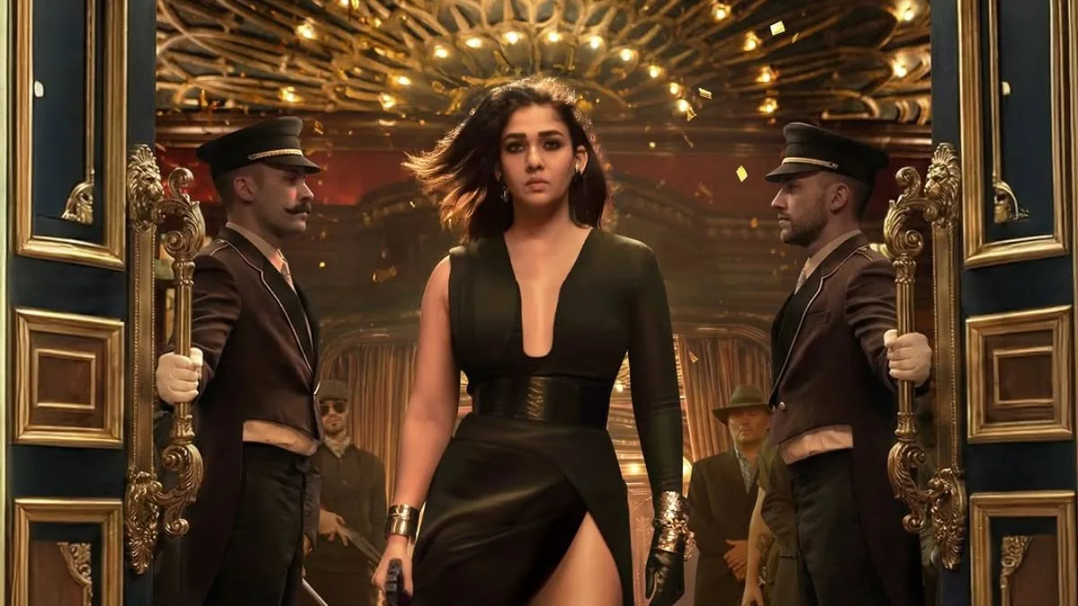 In the first look, Nayanthara appears in a black, sharply styled outfit and is seen holding a gun, framed against a casino-like backdrop—suggesting a character defined by control, power and risk.