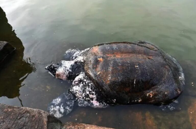 “As an amphibian, it is extremely essential for the turtle to have sandy exposure, which is not available in the lake after the construction of walls around the waterbody,” said Mrinal Kanti Dutta, a former professor of Central Fisheries College in Lembucherra.