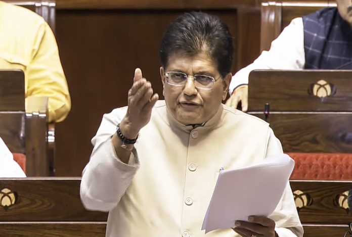 **EDS: THIRD PARTY IMAGE, SCREENGRAB VIA SANSAD TV** New Delhi: Union Minister Piyush Goyal speaks in the Rajya Sabha during the Monsoon session of Parliament, in New Delhi, Thursday, July 31, 2025. (Sansad TV via PTI Photo)(PTI07_31_2025_000268B)