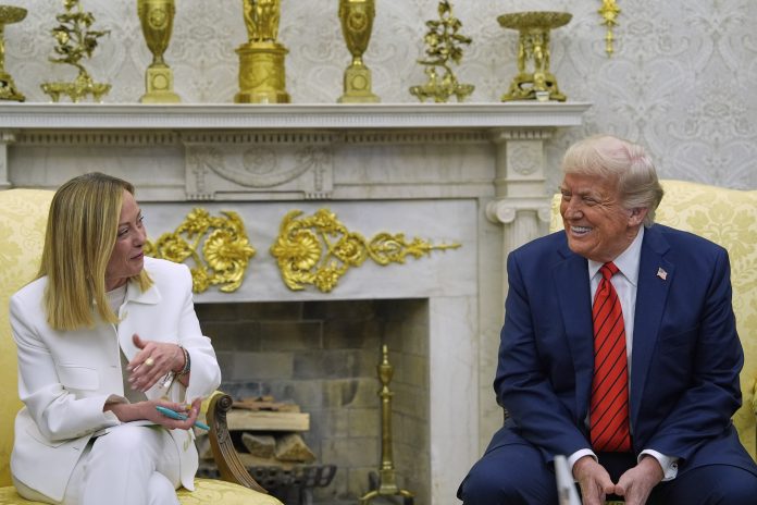 They had seen each other just the previous day in the Oval Office, where Trump lavished praise on the Italian leader for her crackdown on migration but didn’t yield on tariff plans that have increased tensions with the European Union and stoked fears of recession.