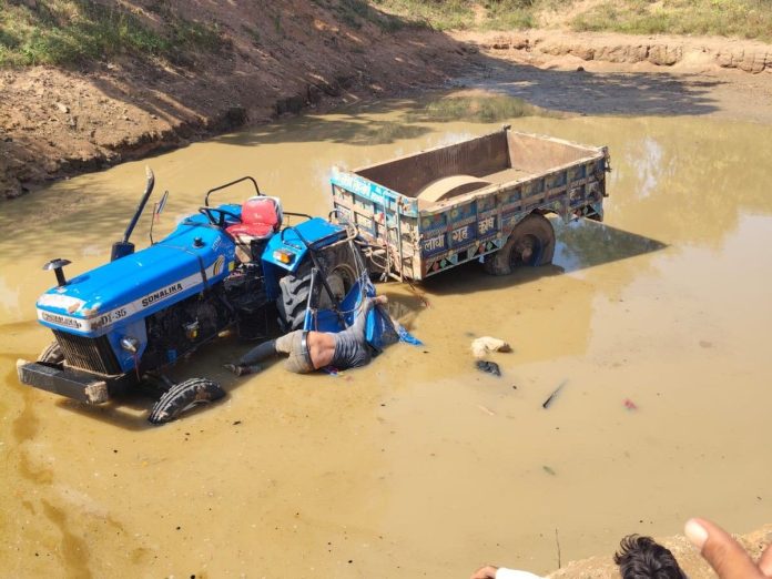 Upon receiving information from villagers, a police team reached the spot. A bulldozer machine was arranged to lift the overturned trolley.