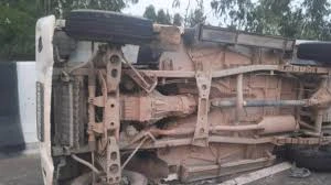 He said Shyam Prakash (35) and Yogesh (6) from Jamasara in Kasimpur died in the accident. Police teams used a JCB to remove the overturned vehicle and briefly diverted traffic. PTI COR KIS OZ OZ