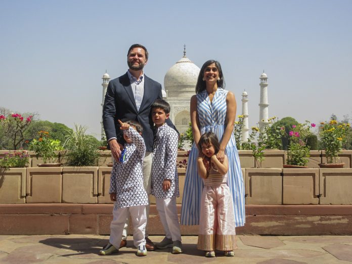The Vances began their India trip on Monday with a visit to the Akshardham Temple in Delhi before meeting Prime Minister Narendra Modi at the latter’s residence in the capital. PTI SDA ARI