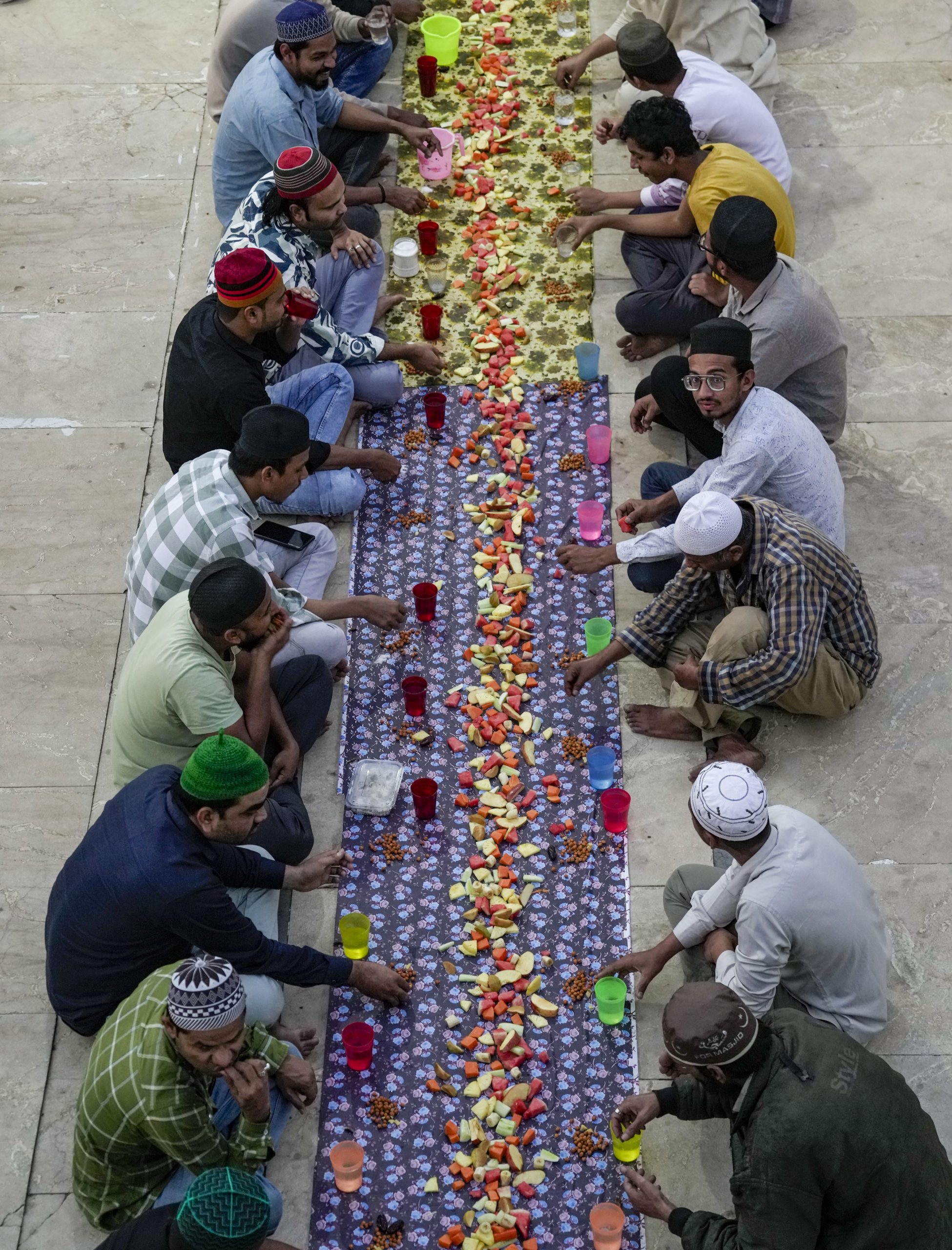 Ahmedabad: People break their fast during 'Iftar' on the first day of the holy month of 'Ramzan', in Ahmedabad, Gujarat, Thursday, Feb. 19, 2026. (PTI Photo/Gurinder Osan) (PTI02_19_2026_000659B)
