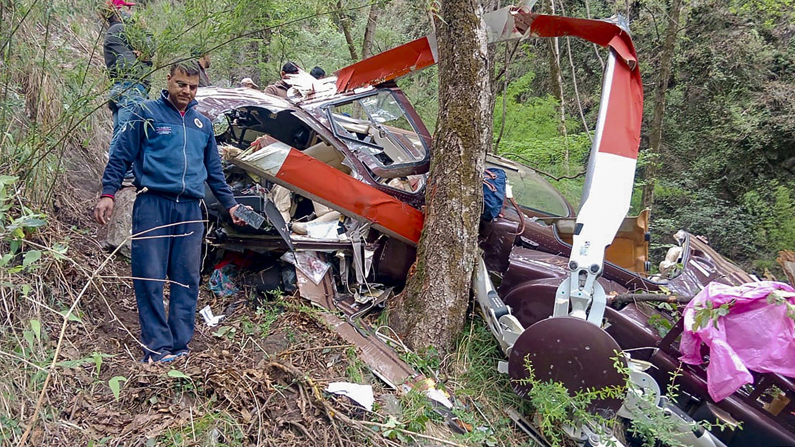 “It also damaged some roadside metallic barricades. However, the helicopter was unable to land and tumbled down the hillside. Eventually, it came to rest against a tree, approximately 250 feet deep in a gorge,” it said.