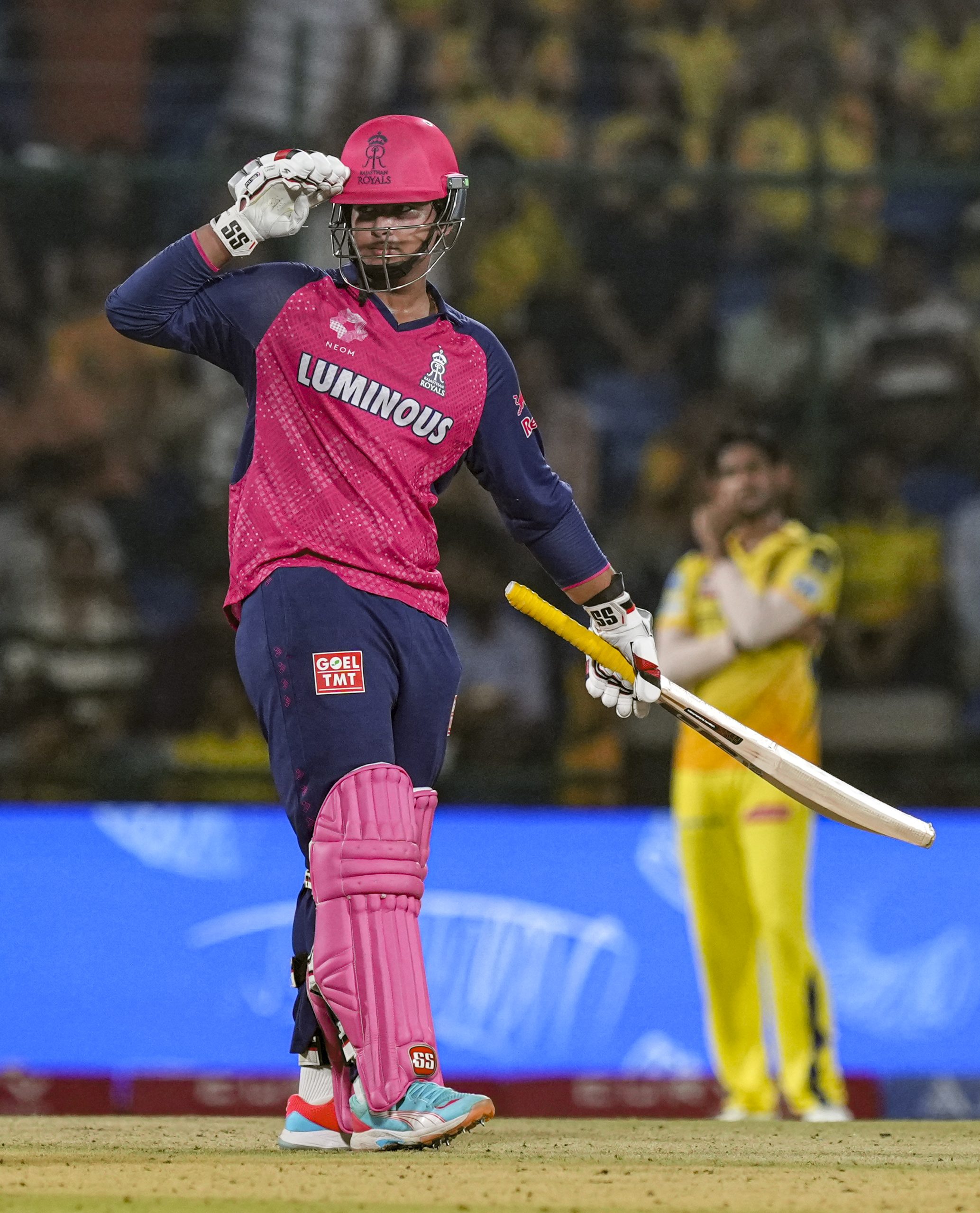 New Delhi: RR's Vaibhav Suryavanshi celebrates his fifty runs during the IPL 2025 cricket match between Chennai Super Kings and Rajasthan Royals at the Arun Jaitley Stadium, in New Delhi, Tuesday, May 20, 2025. (PTI Photo/Manvender Vashist Lav) (PTI05_20_2025_000501B)