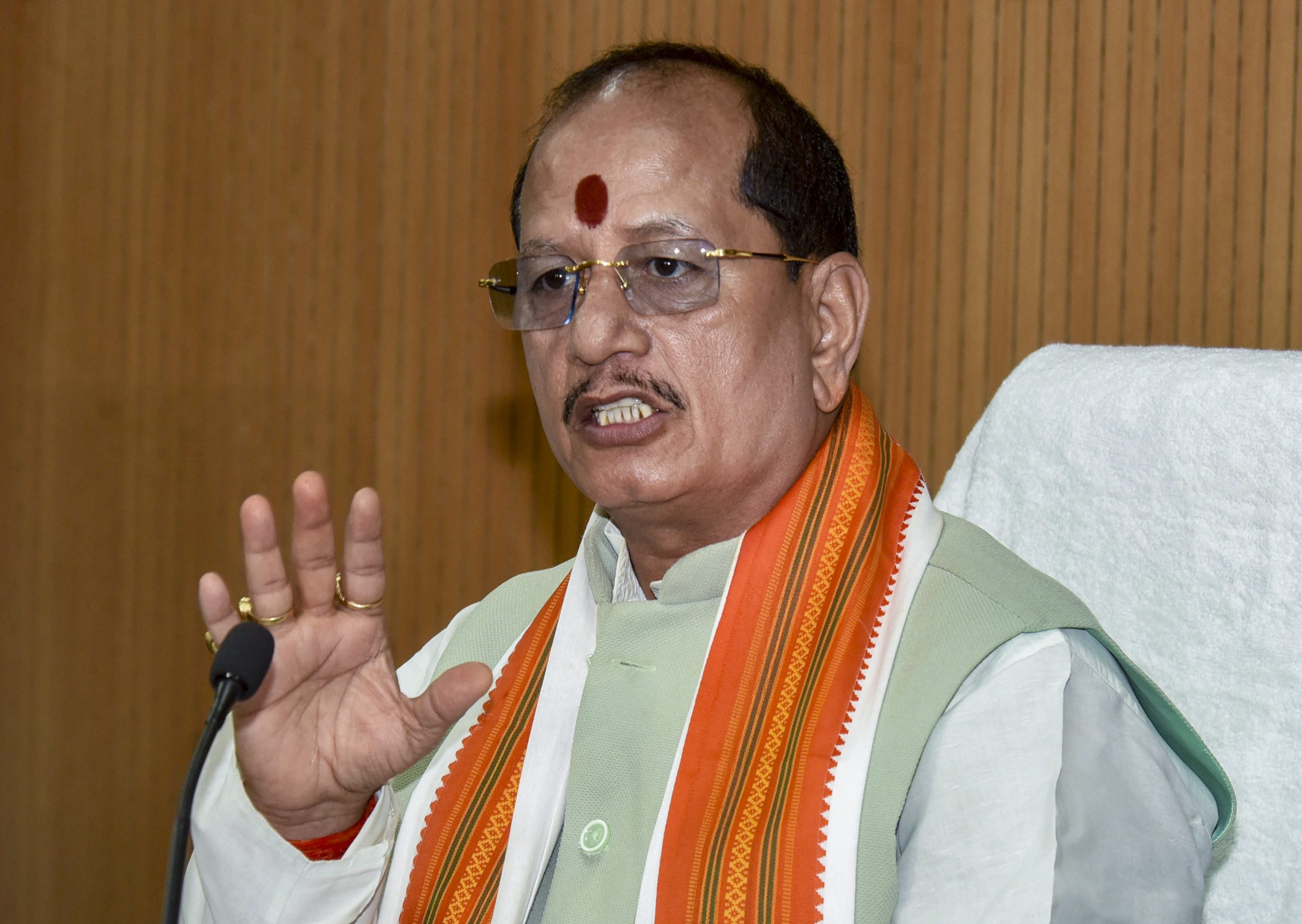 Patna: Bihar Deputy Chief Minister Vijay Kumar Sinha addresses a press conference, in Patna, Bihar, Wednesday, April 1, 2026. (PTI Photo)(PTI04_01_2026_000218B)