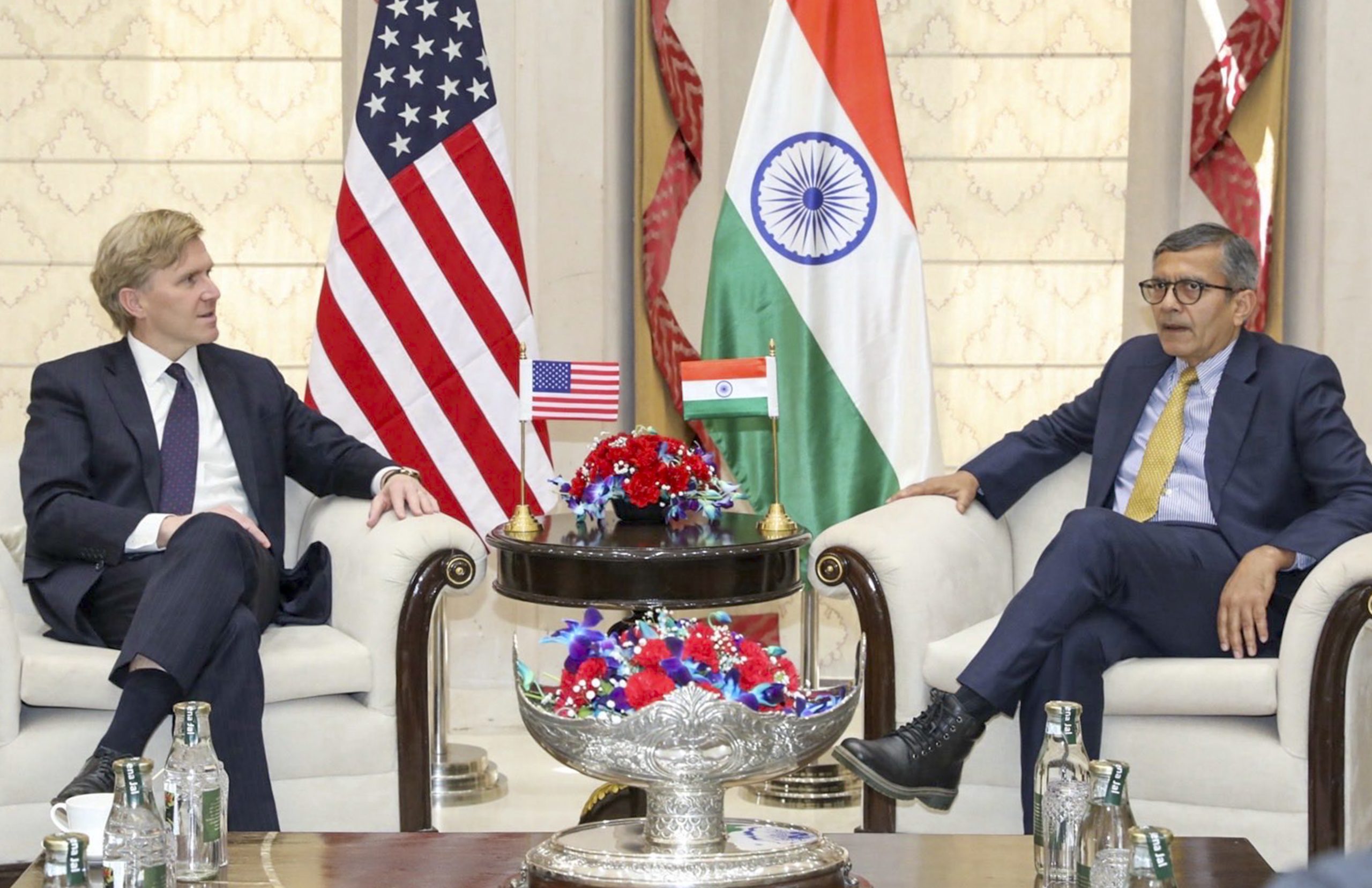 **EDS: THIRD PARTY IMAGE** In this image posted on March 26, 2026, Foreign Secretary Vikram Misri with USA�s Under Secretary of War Elbridge Colby during a meeting. (@USAmbIndia/X via PTI Photo) (PTI03_26_2026_000424B)
