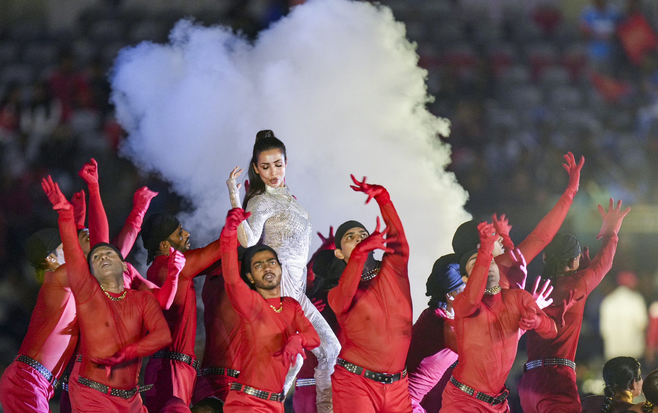 Vadodara: Bollywood actor Malaika Arora performs before the start of the Women's Premier League (WPL) 2026 final T20 cricket match between Delhi Capitals and Royal Challengers Bengaluru, at Baroda Cricket Association Stadium, Kotambi in Vadodara, Gujarat, Thursday, Feb. 5, 2026. (PTI Photo/Kunal Patil)(PTI02_05_2026_000315B)