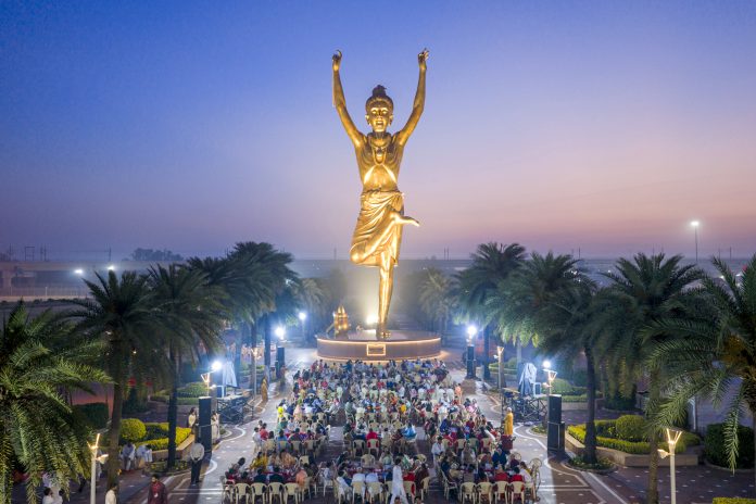 **EDS: THIRD PARTY IMAGE** In this image received on March 25, 2026, attendees sit near the Neelkanth Varni statue during a ‘Vishwa Shanti Mahayagna’ organised as part of the ‘Tapamurti Shri Neelkanthvarni Murti Pratishtha Mahotsav’, at the Akshardham Temple, in New Delhi. (Handout via PTI Photo) (PTI03_25_2026_000410B) *** Local Caption ***