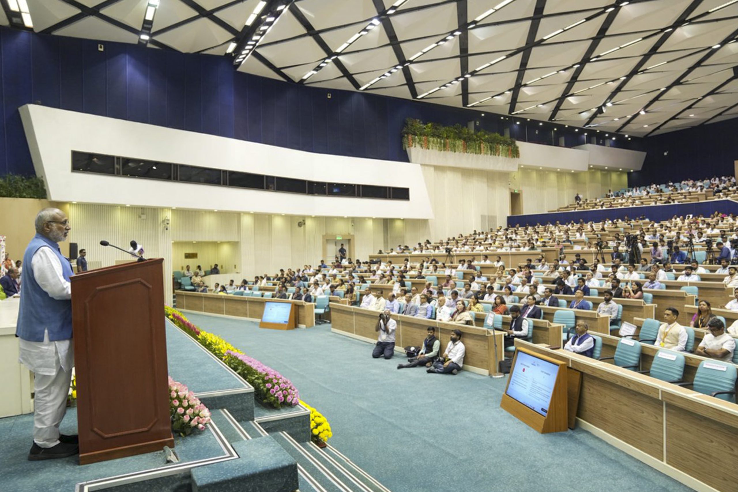 **EDS: THIRD PARTY IMAGE** In this image posted on March 29, 2026, Vice President CP Radhakrishnan addresses the National Consultation on Tele-Law initiative, organised by the Ministry of Law and Justice under the DISHA scheme, in New Delhi. (@VPIndia/X via PTI Photo) (PTI03_29_2026_000305B)