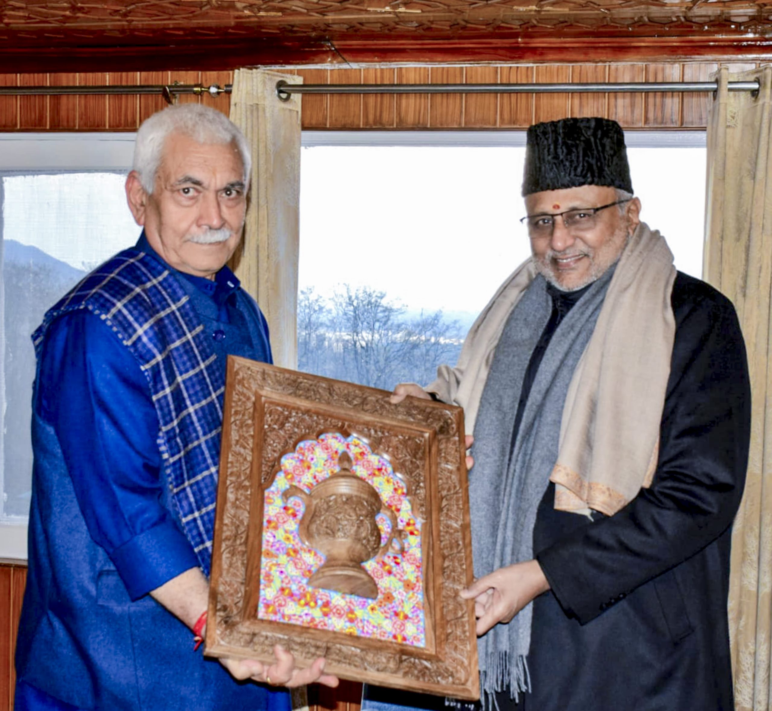**EDS: THIRD PARTY IMAGE** In this image posted on Feb. 25, 2026, Vice President CP Radhakrishnan with Jammu and Kashmir LG Manoj Sinha during a meeting at Lok Bhavan, in Srinagar. (@LokBhavanJandK/X via PTI Photo) (PTI02_25_2026_000352B)