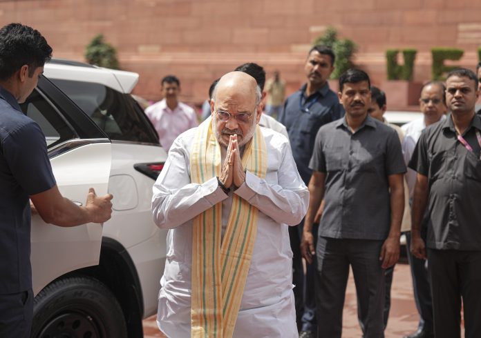 New Delhi: Union Home Minister Amit Shah during the second part of the Budget Session of the Parliament, in New Delhi, Friday, March 27, 2026. (PTI Photo/Ravi Choudhary)(PTI03_27_2026_000105B)