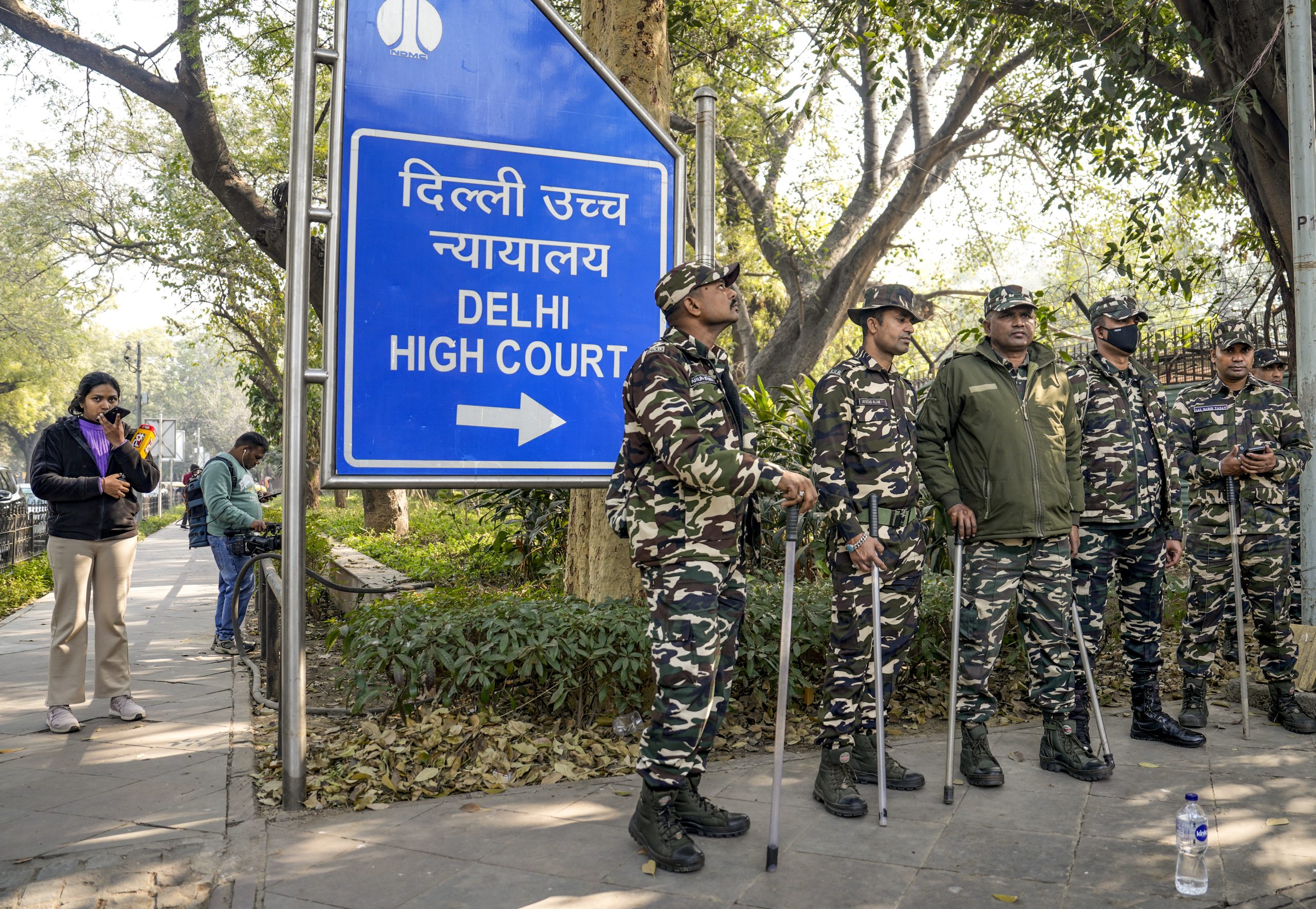 New Delhi: Security personnel keep vigil during a demonstration against the suspension of the jail term of Kuldeep Sengar, a former BJP MLA who was convicted in the Unnao rape case, outside the Delhi High Court, in New Delhi, Friday, Dec. 26, 2025. (PTI Photo/Salman Ali)(PTI12_26_2025_000108B)