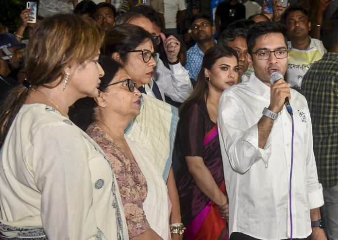 **EDS: RPT, CORRECTS DAY IN CAPTION** Kolkata: Trinamool Congress (TMC) MP Abhishekh Banerjee addresses the media after a meeting with the West Bengal Chief Electoral Officer (CEO) Manoj Kumar Agarwal, ahead of the state Assembly elections, in Kolkata, Monday, March 29, 2026. Banerjee on Monday met CEO Agarwal and alleged that a large number of Form 6s were being submitted by the BJP to make residents of other states voters of poll-bound West Bengal. (PTI Photo) (PTI03_30_2026_RPT527B)