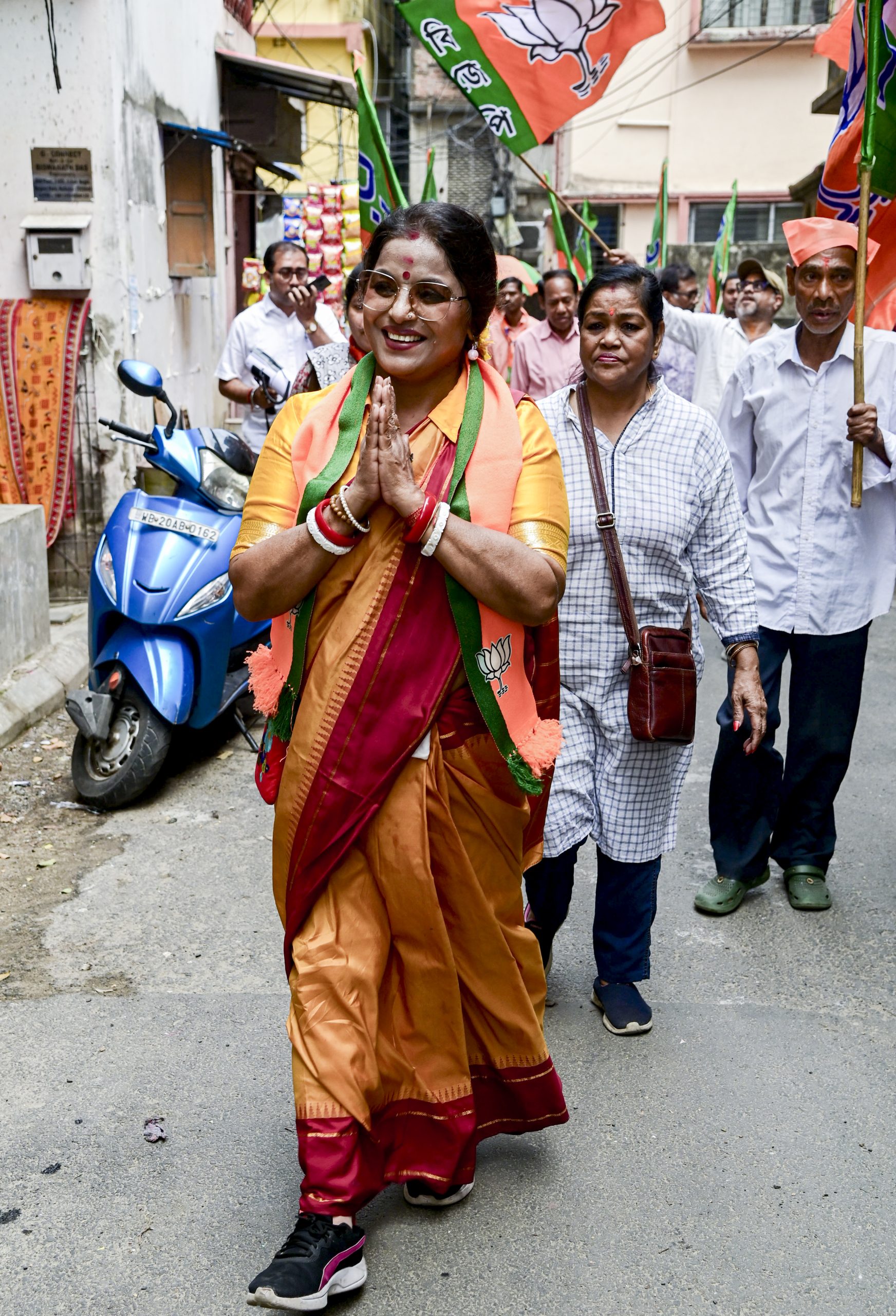 Kolkata: BJP candidate Papiya Adhikari campaigns for the Tollygunge Assembly constituency ahead of the state Assembly elections, in Kolkata, West Bengal, Sunday, March 29, 2026. (PTI Photo)(PTI03_29_2026_000045B)